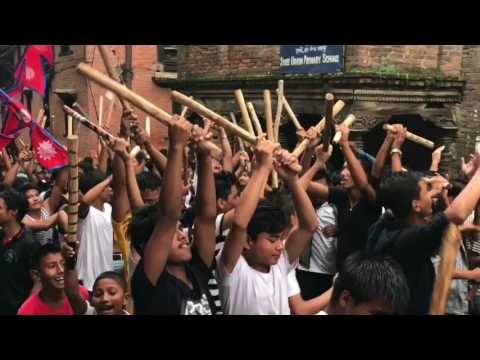 The celebration of Gai Jatra is followed in Kathmandu and Lalitpur around August or September. Tall bamboo poles wrapped in cloth and topped with a horn of straw, and an umbrella are carried around the town in memory of the dead. A colorful procession known as ‘Ghing tang gishi’ is the main attraction of this festival. People wear masks, coloured paints and even sometimes wear female outfits, dancing to music and beating time with sticks.